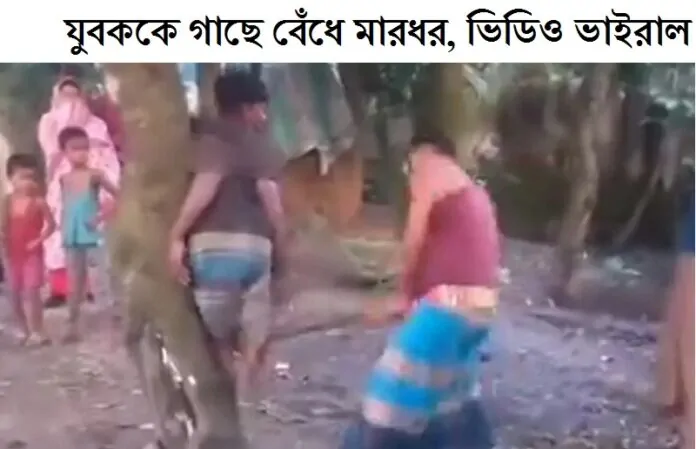 ভিডিও ভাইরাল যুবককে গাছে বেঁধে মারধর